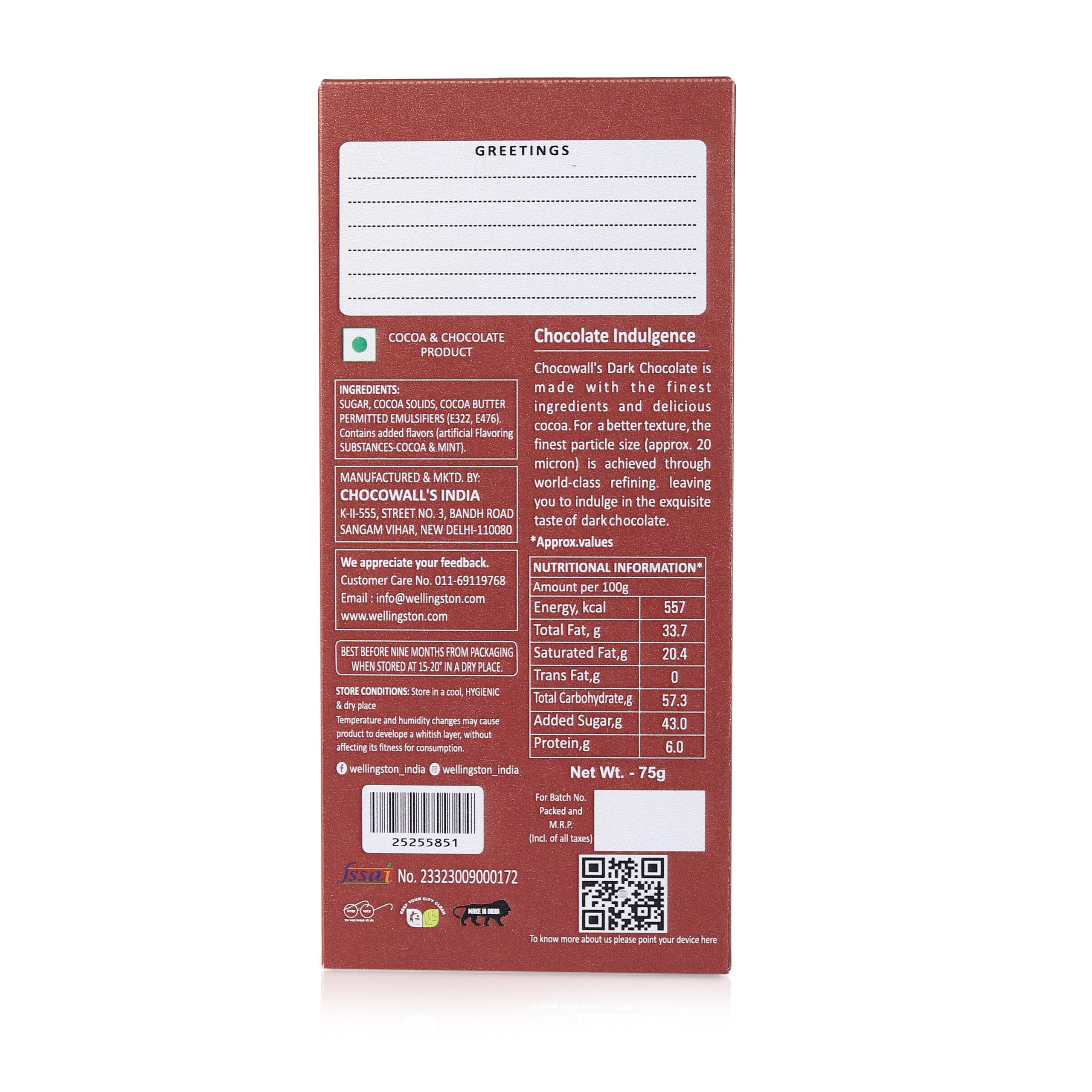 - Versatile Chocolate Bar – Ideal for snacking, baking, or pairing with coffee. A delicious way to satisfy cravings any time of day.